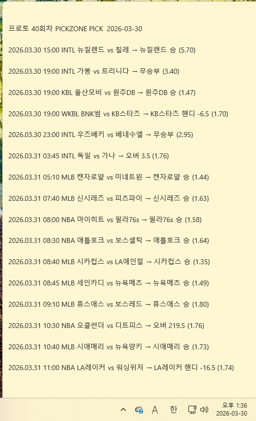 3월 30일 스포츠 조합픽 분석 | 유료픽 추천픽 스포…