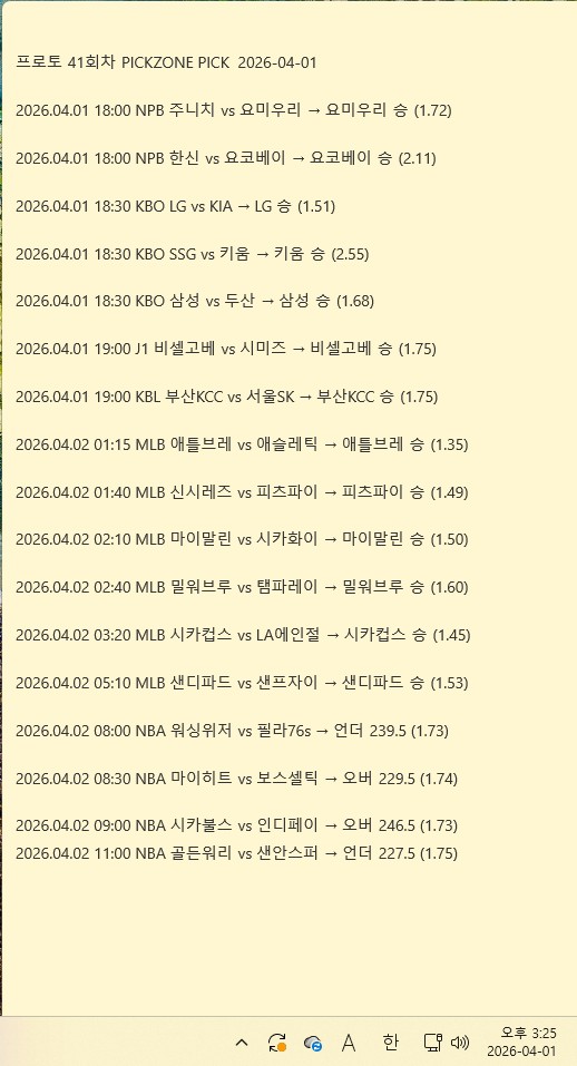 4월 1일 스포츠 조합픽 분석 | 유료픽 추천픽 스포츠…