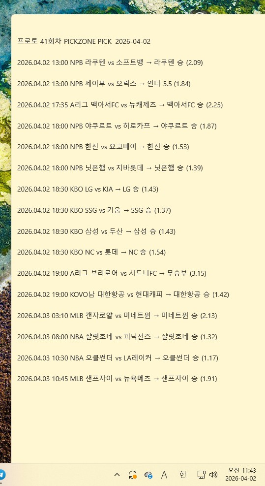 4월 11일 조합픽 공개 | 픽존 오늘 분석픽 실시간 …