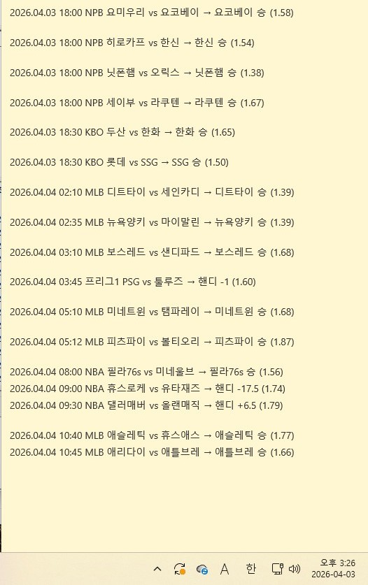 4월 3일 스포츠 조합픽 분석 | 유료픽 추천픽 스포츠…