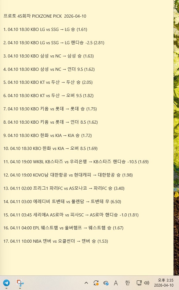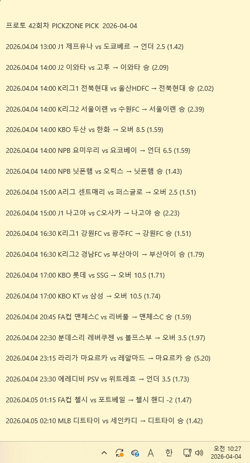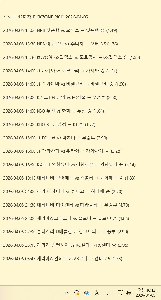 4월 10일 조합픽 공개 | 픽존 오늘 분석픽 실시간 …