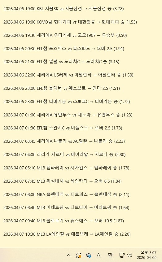 4월 6일 스포츠 조합픽 분석 | 유료픽 추천픽 스포츠…