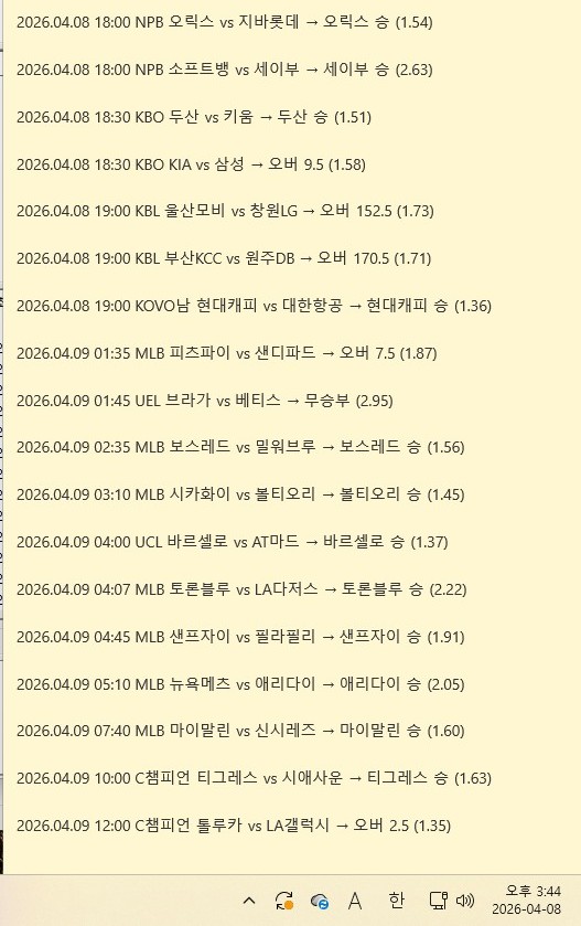 4월 8일 스포츠 조합픽 | 유료픽 분석픽 추천픽 수…